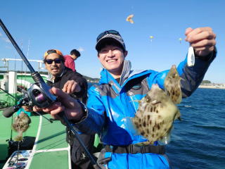 2隻で出船。4尾の次10尾 中型主体で釣れました。 当店では通年130号ビシ |