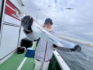 同船ルアー1名3本 海悪く潮の速い中、 反応小さく拾い釣りでした。 天秤オモリ60号 テンヤオモリ40号・50号 |