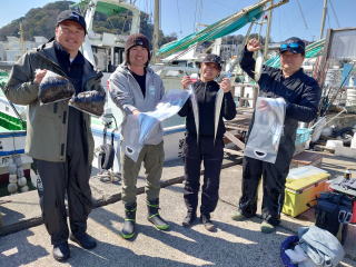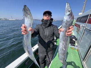 朝一海悪く猿島沖を狙い、 後半久里浜沖へ行きました。 天秤オモリ60号 テンヤオモリPE1号以下で40号 テンヤオモリPE2号以下で50号 |