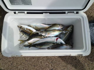 風強く、潮速く釣りづらかったです。 他)サバ・クロダイなど 当店では通年130号ビシ |