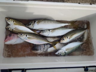 反応あり、良型多いも、 海悪く苦戦しました。 当店は通年130号ビシ |