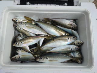 2隻で出船。 潮の流れ速く、釣りにくい時間はあるが、 中アジ主体で釣れました。 当店では通年130号ビシ |